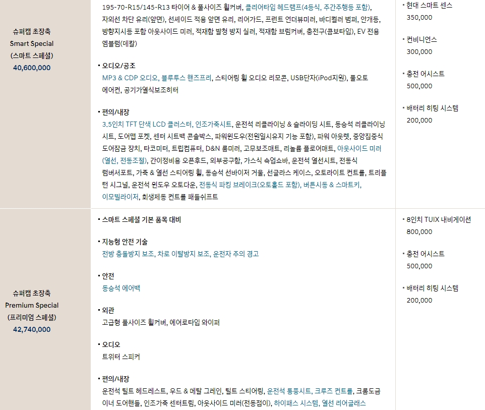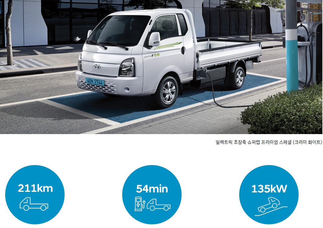 1회 완충시 211km를 주행이 가능하며 뛰어난 경제성과 첨단안전 편의 사양을 탑재하였으며, 적재 중량을 실시간으로 감지해 주행하는 거리를 안내하는 첨단 기능과 전방 충돌하지 보조 및 차로 이탈방지 보조장치를 적용해 사고를 미연에 방지하는 기능을 탑재 하였습니다.