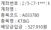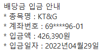 오늘 드디어 KTNG 배당금이 들어왔다.
