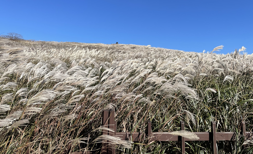 간단하게 그림을 감상하고 산굼부리를 향해 자그마한 언덕길을 올라가면 가을의 장관인 억새풀을 마주 하게 된다.