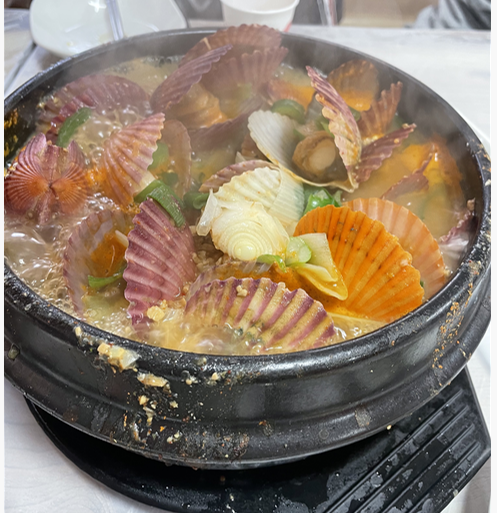 해물된장에는 홍가리비와 꽃게(아님)가 들어가 꾀 시원한 맛을 느낄수 있었지만, 꽃게가 아닌 참게에 가까운 놈이 들어있어 게살을 흡입할 수 없었다. 생각보다 딱딱한 껍질과 많지 않은 살 때문에 홍가리비에 만족을 해야했던 해물된장찌개.