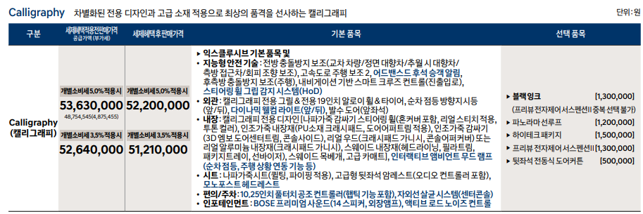 그랜져 하이브리드 캘리그래피 모델 가격은 5363만원에