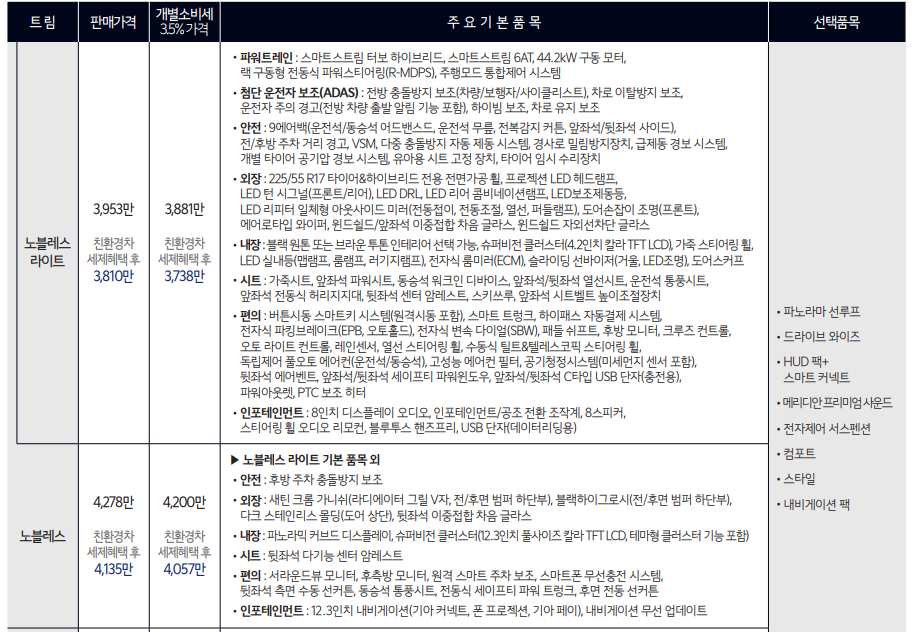 물론 옵션의 차이는 있겠지만 기본적으로 1.6터보에 하이브리드