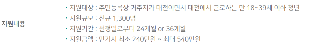 최소 240만원 부터 최대 540만원까지 가능하며 여기에 똑같은 금액을 대전시에서 지원하게 됩니다.