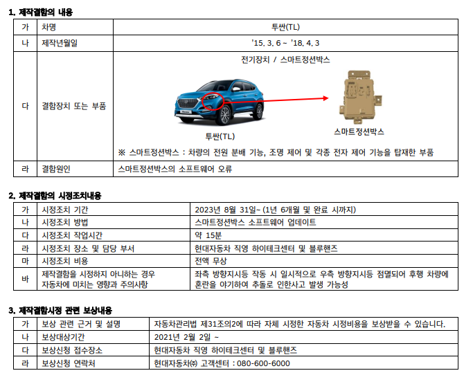 현대 자동차는 투싼(TL)차량의 스마트정션박스 소프트웨어
