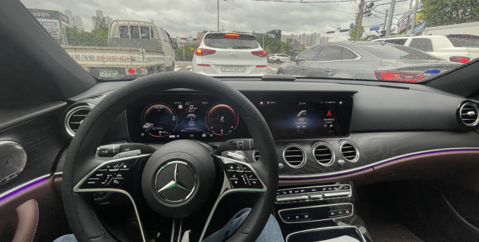 처음 E-class 받고 시내주행을 했을때 거짓말 조금 보태면 예전 레인지로버 친구차를 탔을때 그 구름위를 미끄러지듯이 달려가는 느낌적인 느낌이었다.