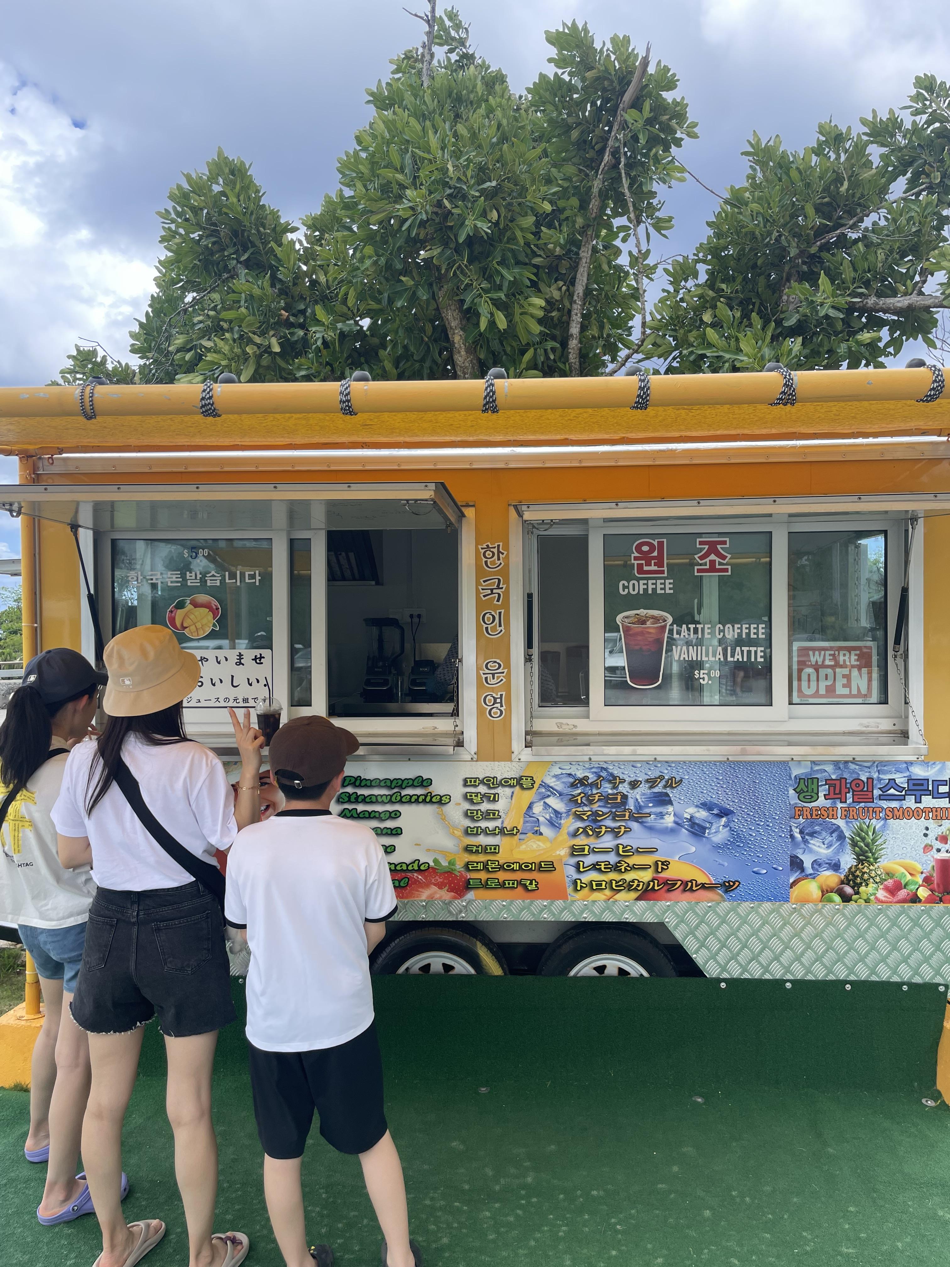 다시 본론으로 와 사랑의 절벽에 도착하여 절경에 감탄하고 있다가 괌에서 항상 굶줄였던 한국의 진한 커피의 맛이 못내 지워지지 않았던 상황에서 한국인이 운영하는 커피차를 발견하고 혹시나 하고 맛을 보기로 했다.