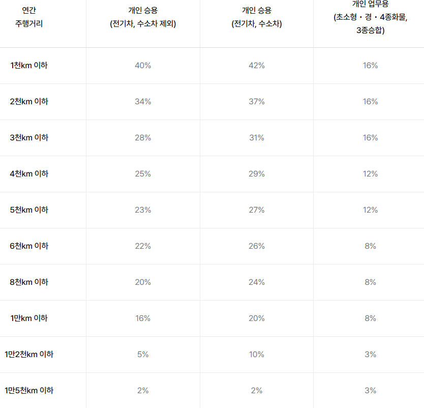 주행 거리별 할인율에 대해서 알아 보자고 한다.