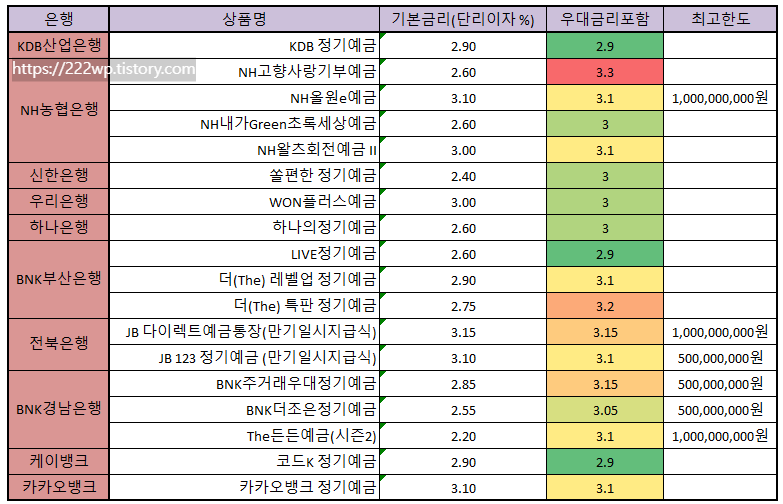 JB다이렉트예금통장이 가장 높은 3.15%의