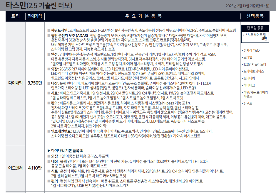 2.5터보 가솔린 단일 모델이라는 점을 생각하면