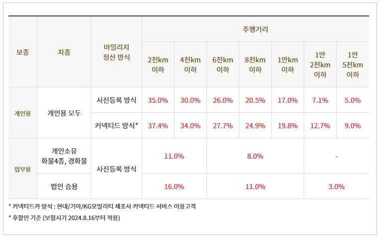 주행거리별 할인율에 대해 알아보도록 하겠다.