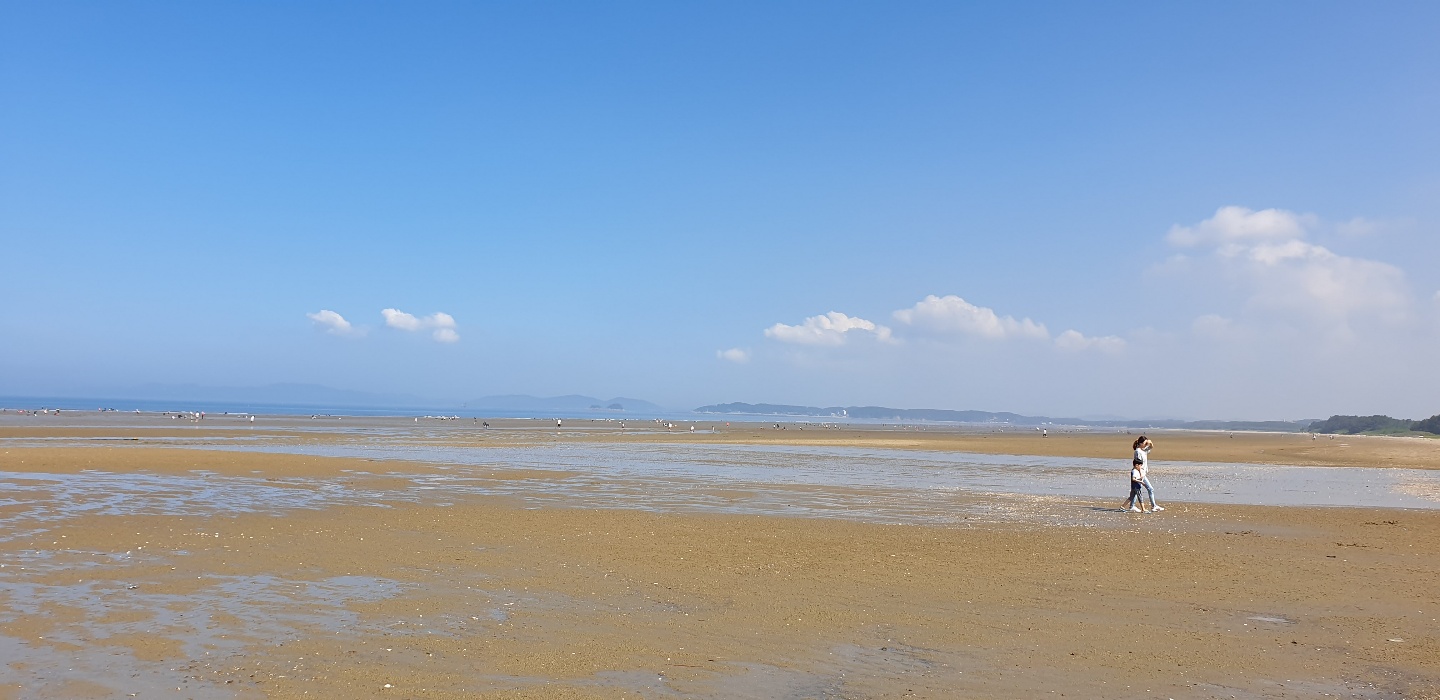 간조시간의 물이 너무 오래 빠져 있어서 조개가