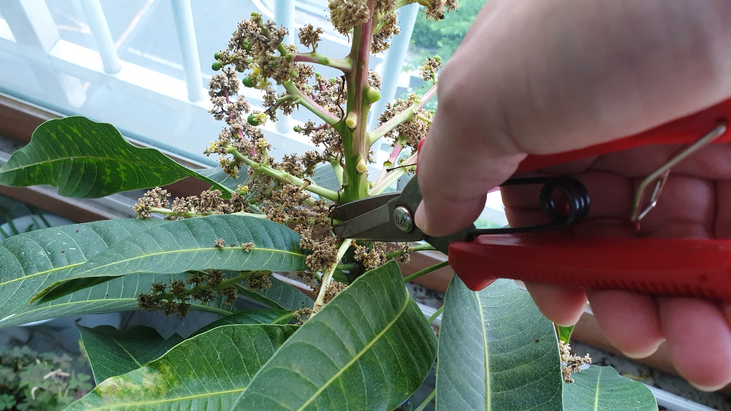 애플망고 꽃이 5월에 만개하여 붓으로 인공수정을 해 주었다.