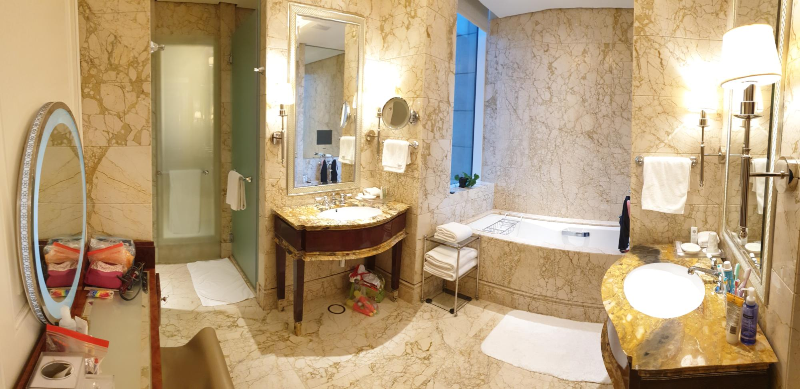 세면대와 화장실이 넓게 잘 빠져 가족이 씻고 화장하고 준비하는데 있어 공간의 부족함이 없어 여유롭게 모든걸 준비할수 있어 상당한 만족감을 주었다. 여성분들이 많이 포한된 가족이라면 꼭 추천해 드리고 싶은 호텔이다.