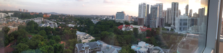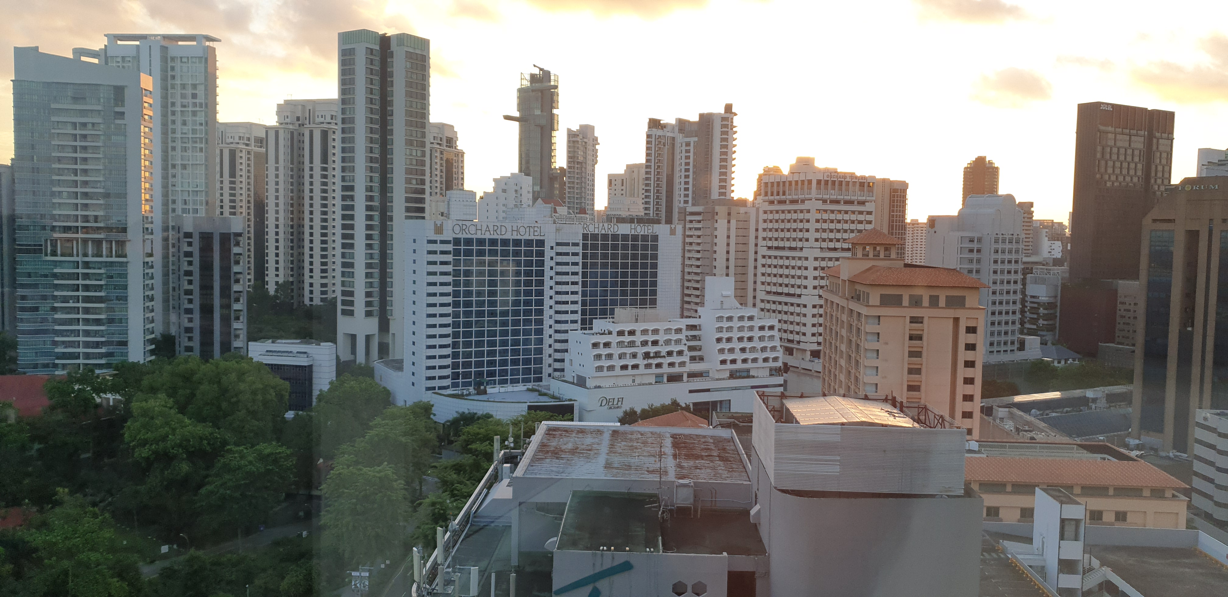 싱글침대를 하나 제공을 받고 다음날 다시 투베드룸으로 옮기기로 하고 첫날밤을 보냈다. 아침에 세인트로지스 15층에서 바라본 오챠드호텔의 전경이다. 오차드호텔도 예약물망에 있었지만...안 가길 잘한듯...신식 건물사이에 약간은 오래된 느낌의 호텔정도였다.