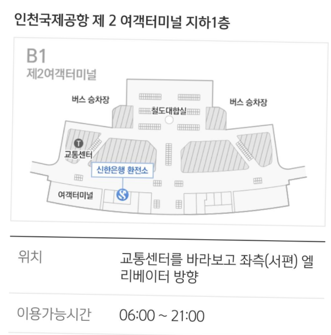 여행에 있어 가장 중요한 환전은 신한쏠 앱을 이용하여 환전을 신청하여 인천국제공항 제2터미널 지하1층 신한은행 환전소에서 돈을 찾으면 된다. US $는 현금인출기로 인출이 가능하며, 싱가포르$는 인출기 옆 창구에서 직접 환전을 해준다.