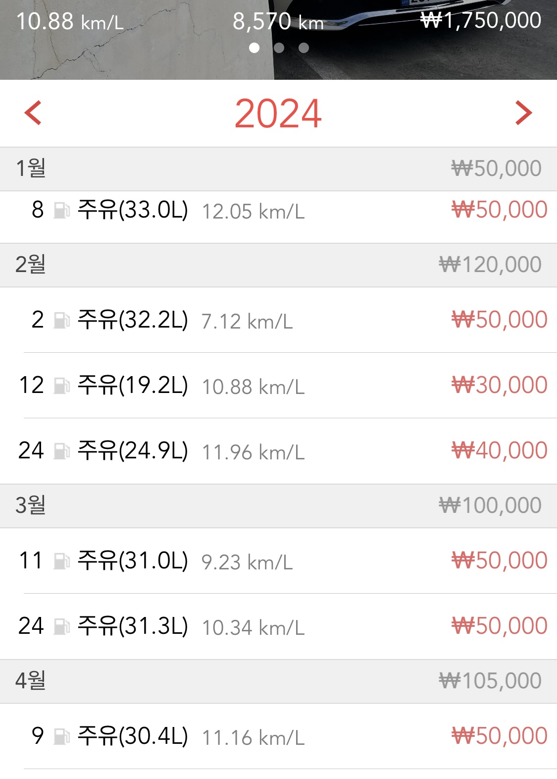 기존에 타고 다니는 차량은 디젤 차량으로 연비나, 연료값에 있어서 가솔린 보다는 훨씬 유리한 점이 있었기에 가솔린 모델을 구매했을때 어느정도의 유지비가 들지에 대해 많은 고민을 했었다.