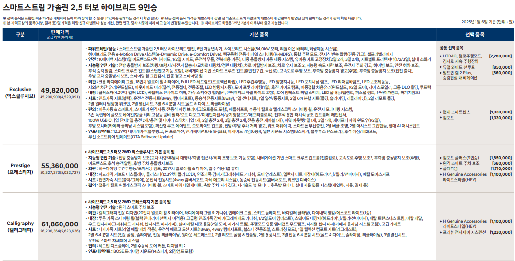2.5터보 하이브리드 모델의 엔트리 가격이